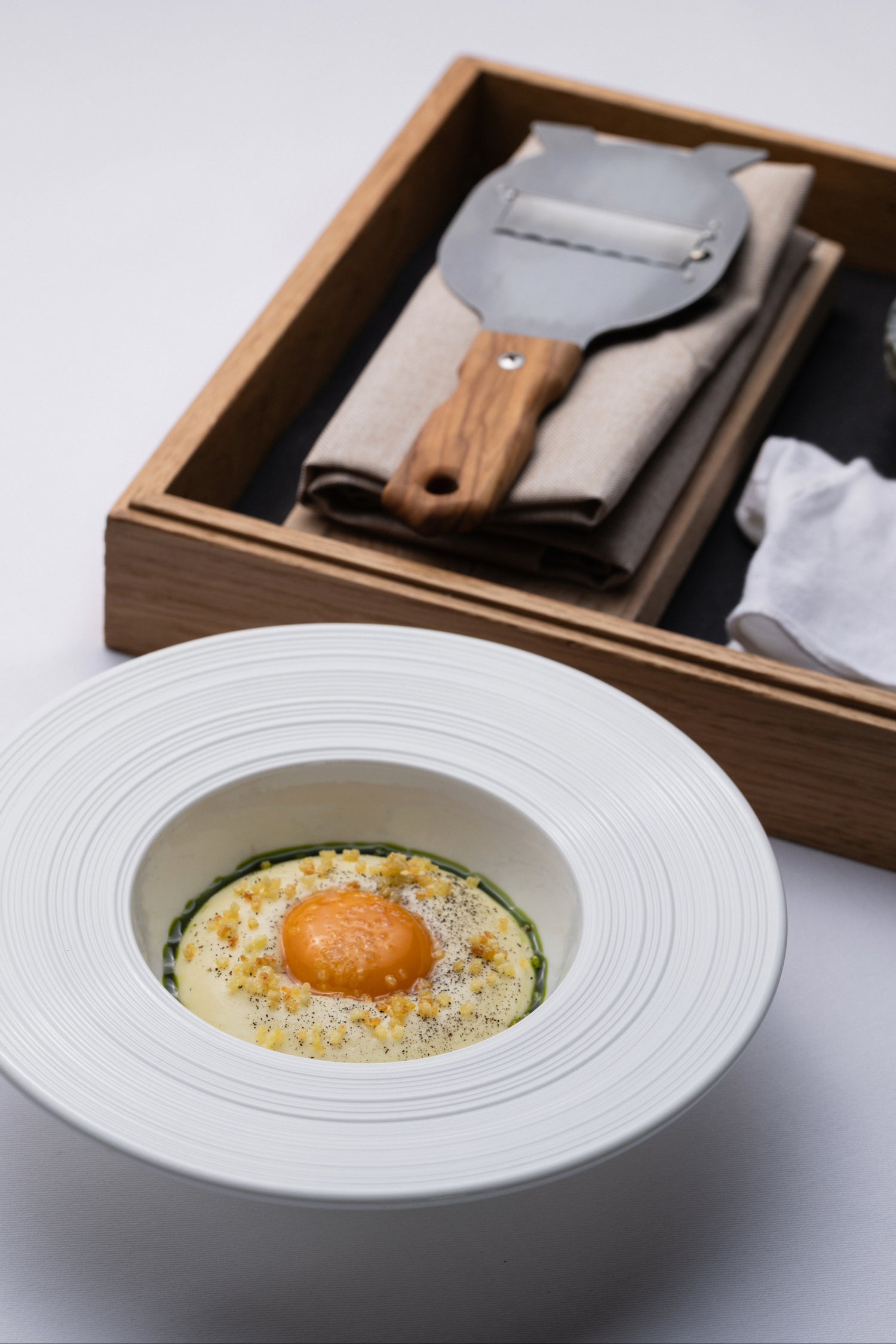 Beispielhaft für das Konzept des Centric Dining und die Küche von Sascha Spring und dem «Seepark» ist das Signature Dish, das Regionalität mit einem Fokus auf Wertigkeit kombiniert. Die Steffisburger Kartoffeln werden zum feinen Espuma und mit confiertem Eigelb und Lauch zu einer einmaligen Möglichkeit, vertraute Geschmäcker ganz neu kennenzulernen. Mit viel Feingefühl werden die Kreationen angerichtet und auf die Geschichten und Ideen hinter diesen eingegangen. Das «Centric Dining» im Hotel Seepark ist eine kulinarische Unterhaltung, die man mit dem Team von Sascha Spring erlebt haben muss